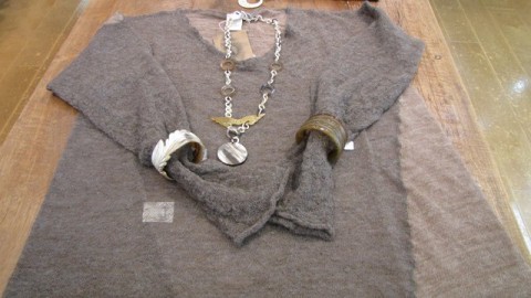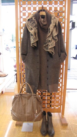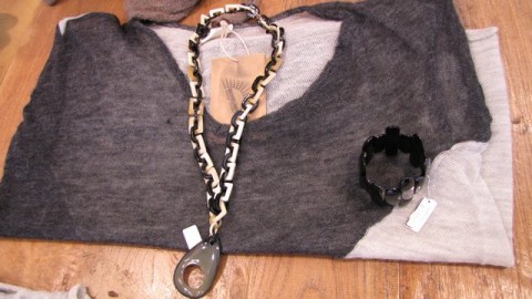 チェーンとストーン、革紐が一体になったロングネックレス。。。これ一つで存在感があり、完成されたデザインなので、ボリュームニットやシンプルコーディネイトの主役になります。。。
