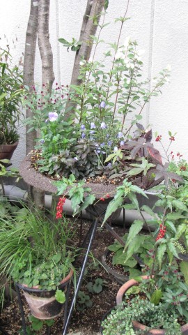 ちっちゃい紫の花が顔を出しています。。。
