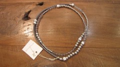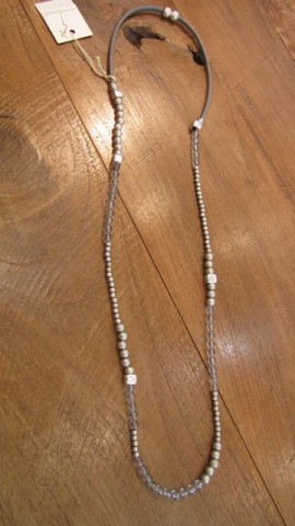パールと革紐、シルバービーズとクリスタルビーズのシンプルなロングネックレス。。。そのままでも、2重にしても使えます